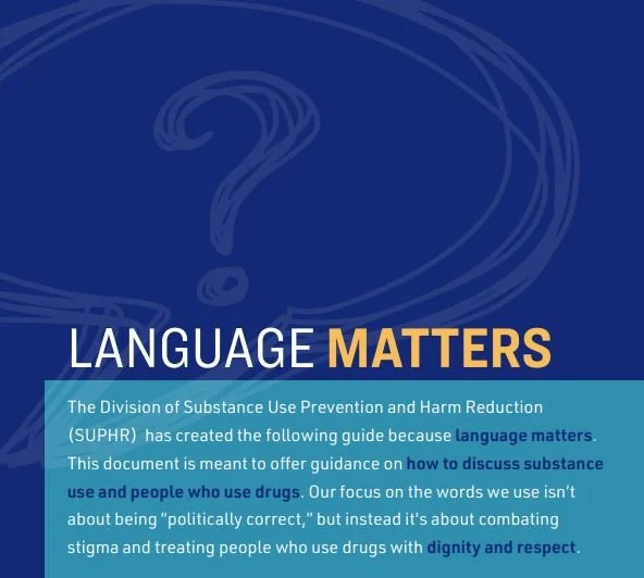 The Division of Substance Use Prevention and Harm Reduction (SUPHR) has created the following guide because language matters. This document is meant to offer guidance on how to discuss substance use and people who use drugs. Our focus on the words we use isn’t about being “politically correct,” but instead it's about combating stigma and treating people who use drugs with dignity and respect.